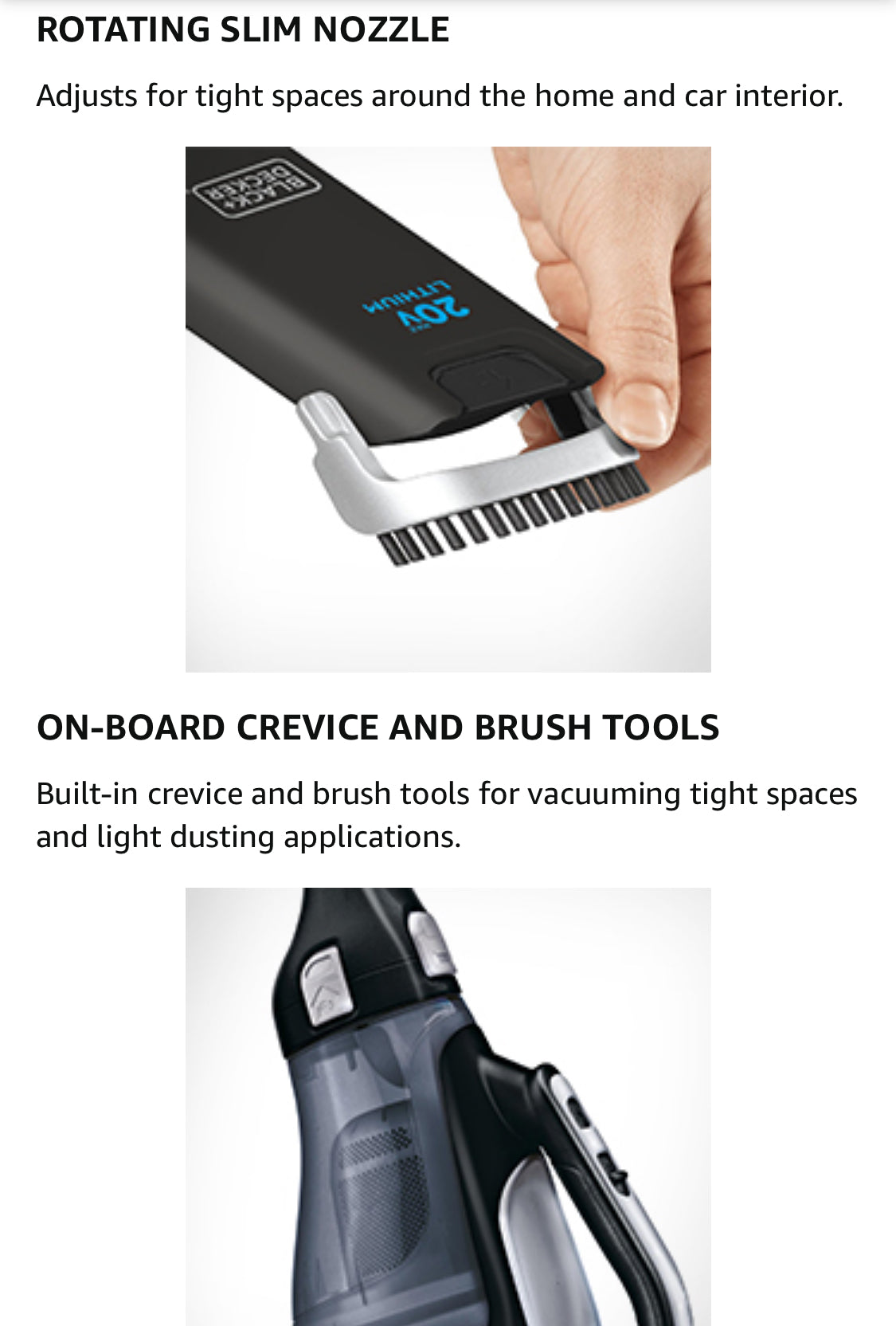 - ROTATING SLIM NOZZLE - Adapts to clean hard-to- reach spaces