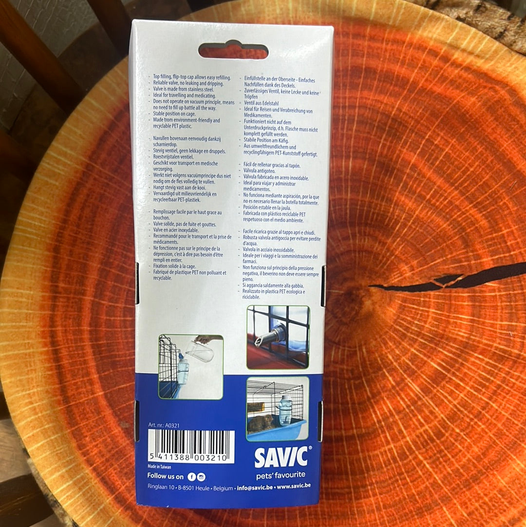 Refillable Savic 600 ml bottle flip top with needle tip (bigger acrylic bottle holder is available too)